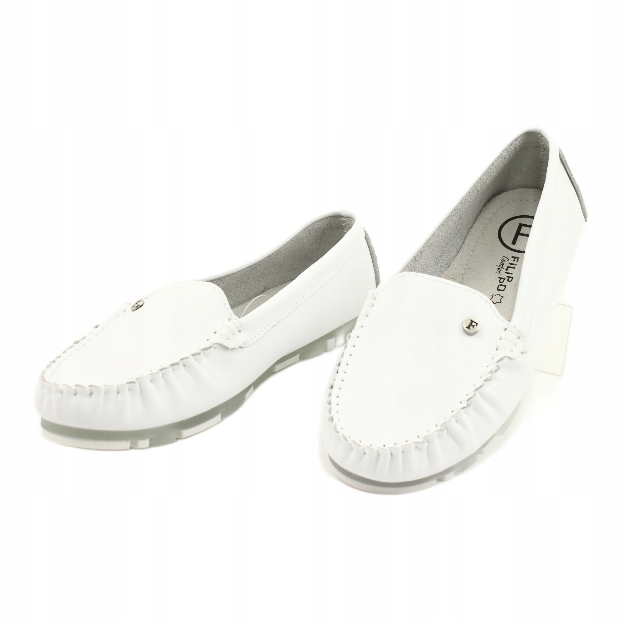 Upptäck elegans och komfort i Filippo DP2037 sommarlädermockasiner för kvinnor i vitt. Varumärket Filippo är synonymt med utmärkt kvalitet i kombination med intressant design, och dessa mockasiner är ett perfekt exempel. Helt gjorda av naturligt läder ger de inte bara ett elegant utseende, utan också hållbarhet och komfort.