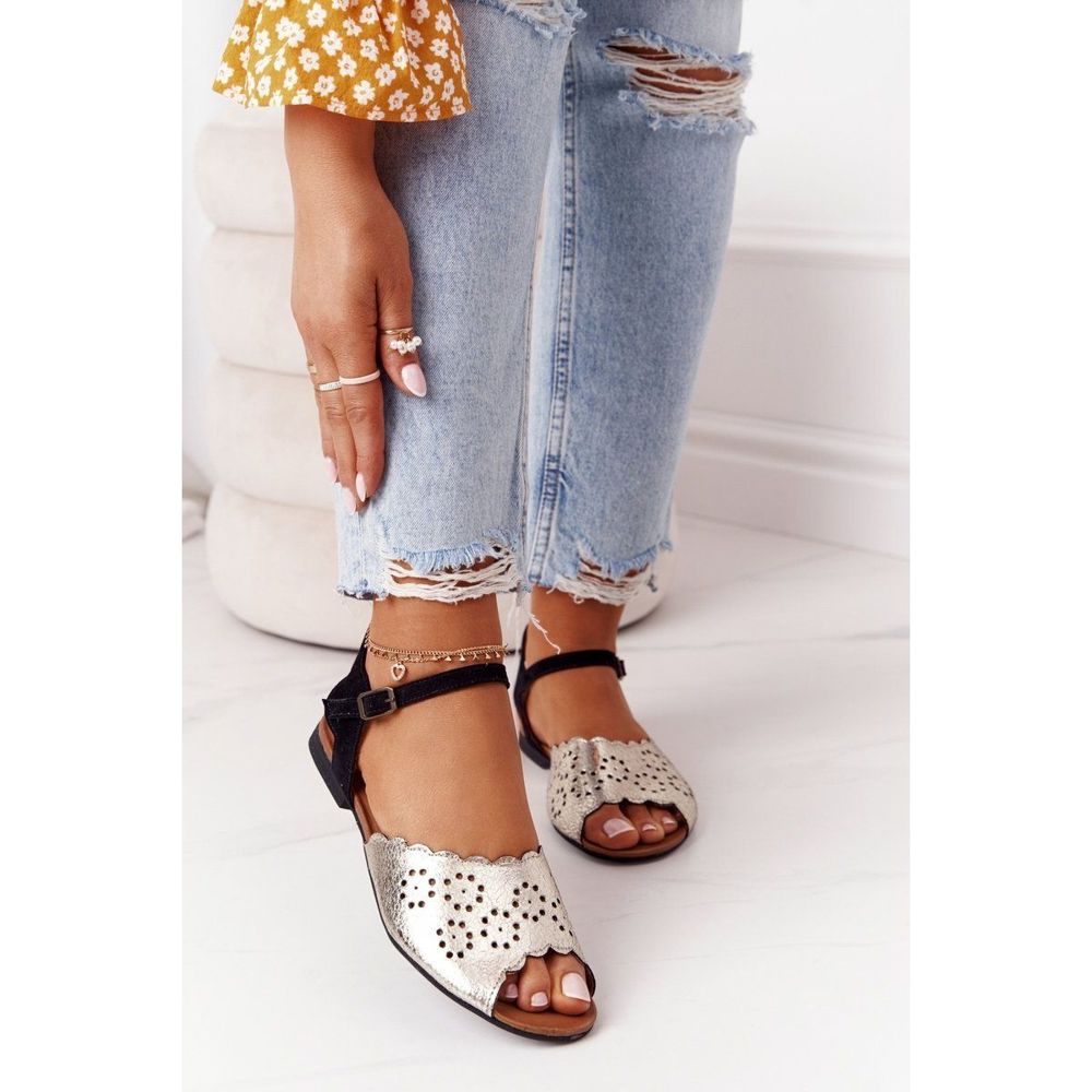 Information: Läder Maciejka 05199-25 Sandaler i svart och guld gyllene