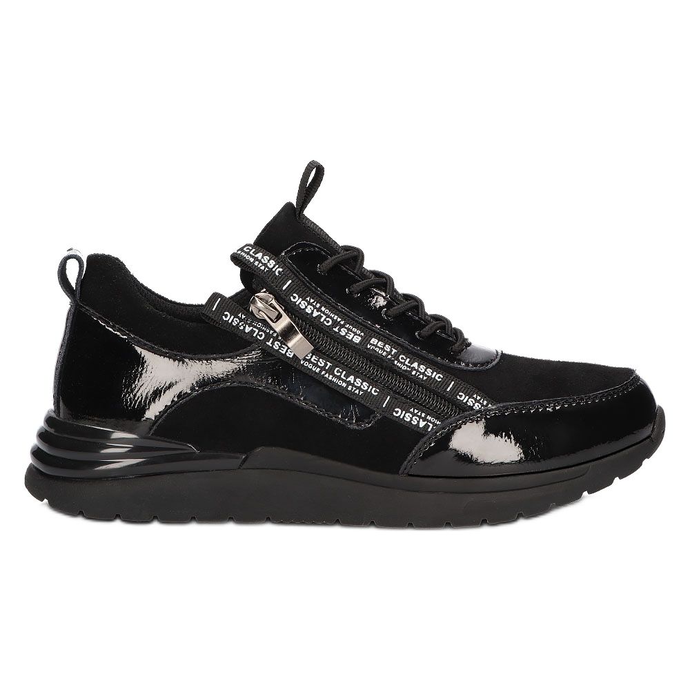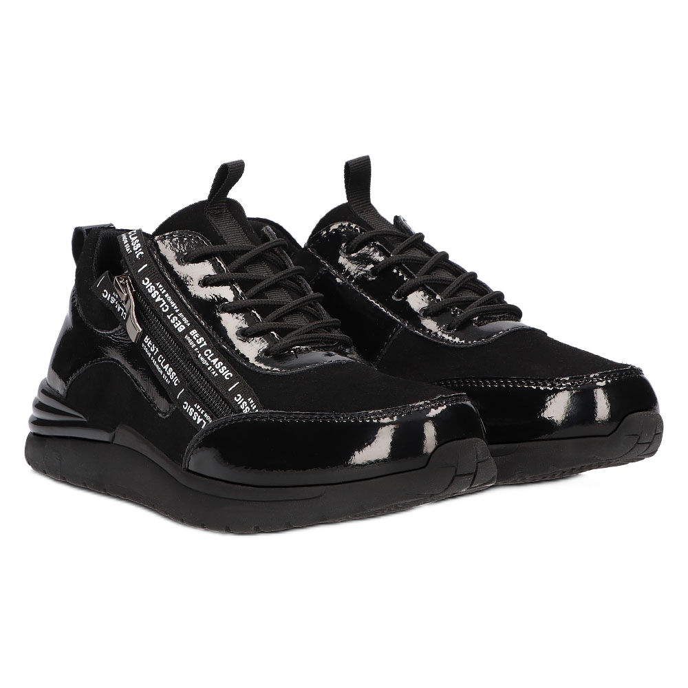 Dessa sneakers är gjorda av naturligt läder och ger inte bara estetik utan också hållbarhet. Deras lackerade finish ger elegans och framhäver karaktären hos varje kvinnlig styling. Tack vare den runda tån och låga klackhöjden (3,5 cm) garanterar dessa skor komfort att bära hela dagen utan att trötta fötterna även under längre promenader.