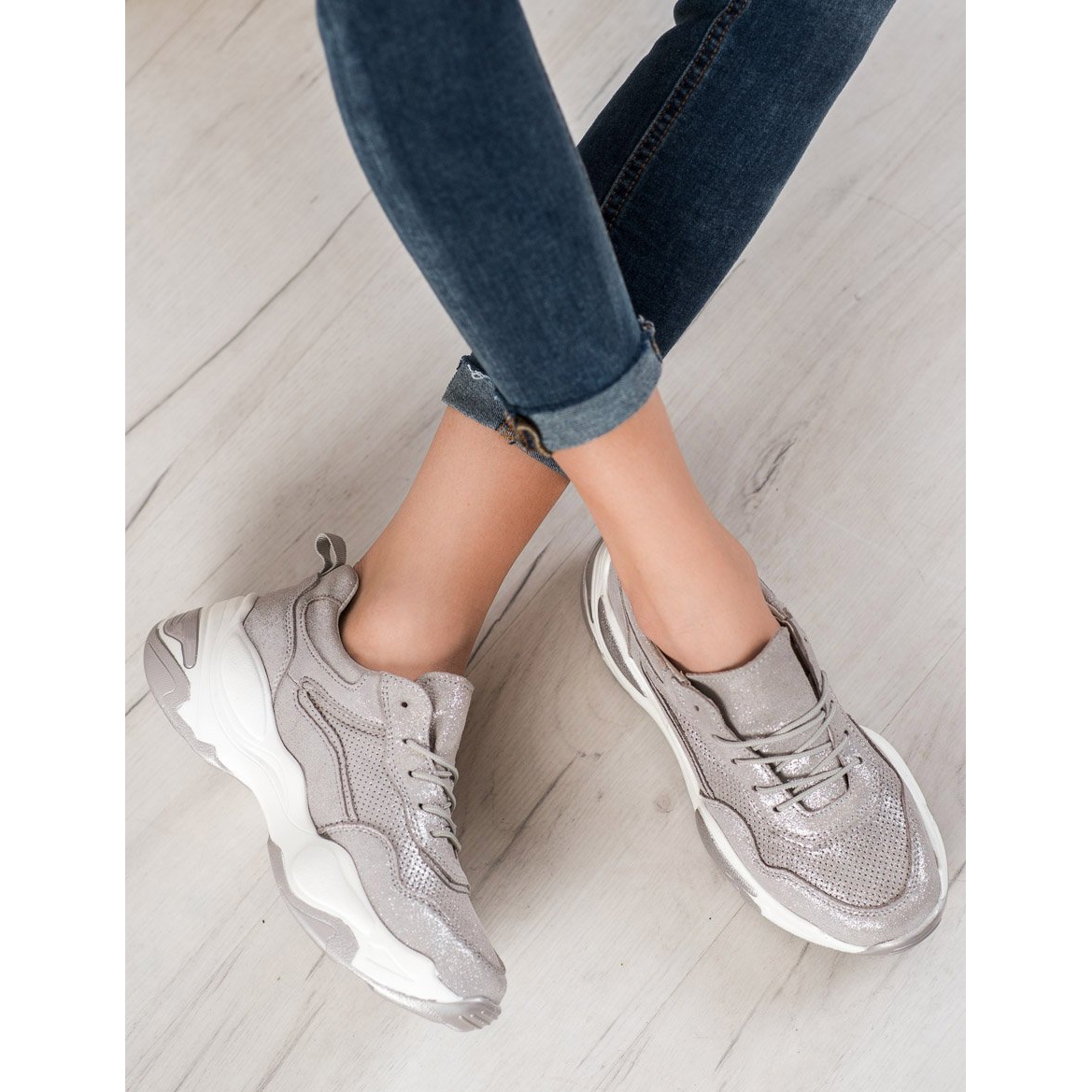 Upptäck en ny dimension av komfort och stil med Goodin damsneakers i silvergrå färg, som perfekt matchar aktuella modetrender. Dessa moderna sportskor, gjorda av 100 % naturligt läder, kombinerar hållbarhet med otrolig mjukhet, vilket garanterar komfort under hela dagen.