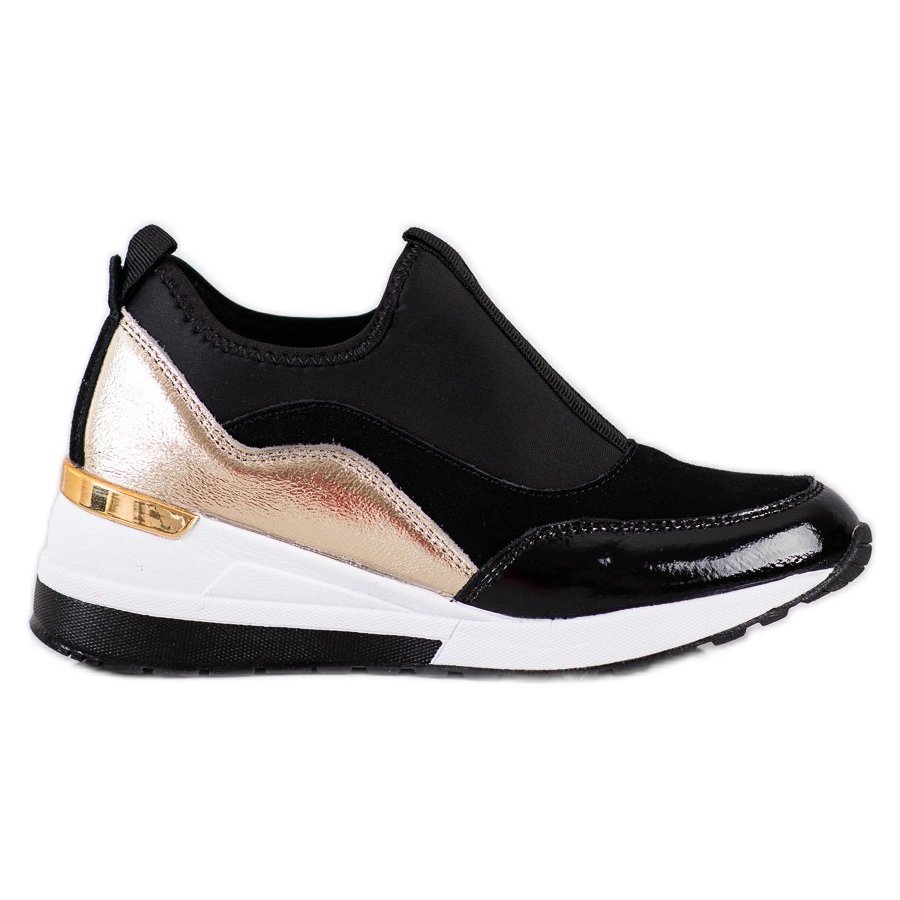 Detaljer: Goodin Wedge Sneakers i läder svart gyllene