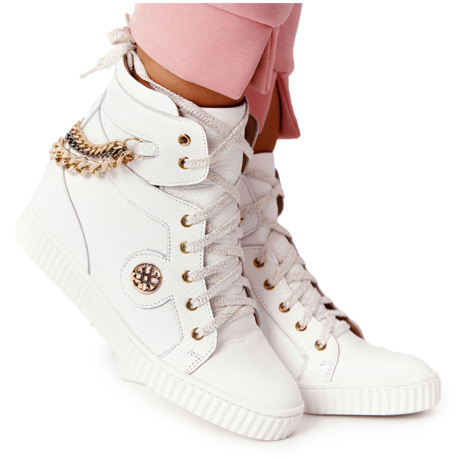 Upptäck exceptionell komfort och stil med läder wedge sneakers från det polska märket Lewski Shoes. Modellen 3004-0 i en elegant vit färg är en perfekt kombination av moderiktig design och funktionalitet. Tillverkade av högkvalitativt naturligt läder, både polskt och italienskt, kommer dessa sneakers verkligen att glädja varje kvinna som värdesätter elegans och komfort.