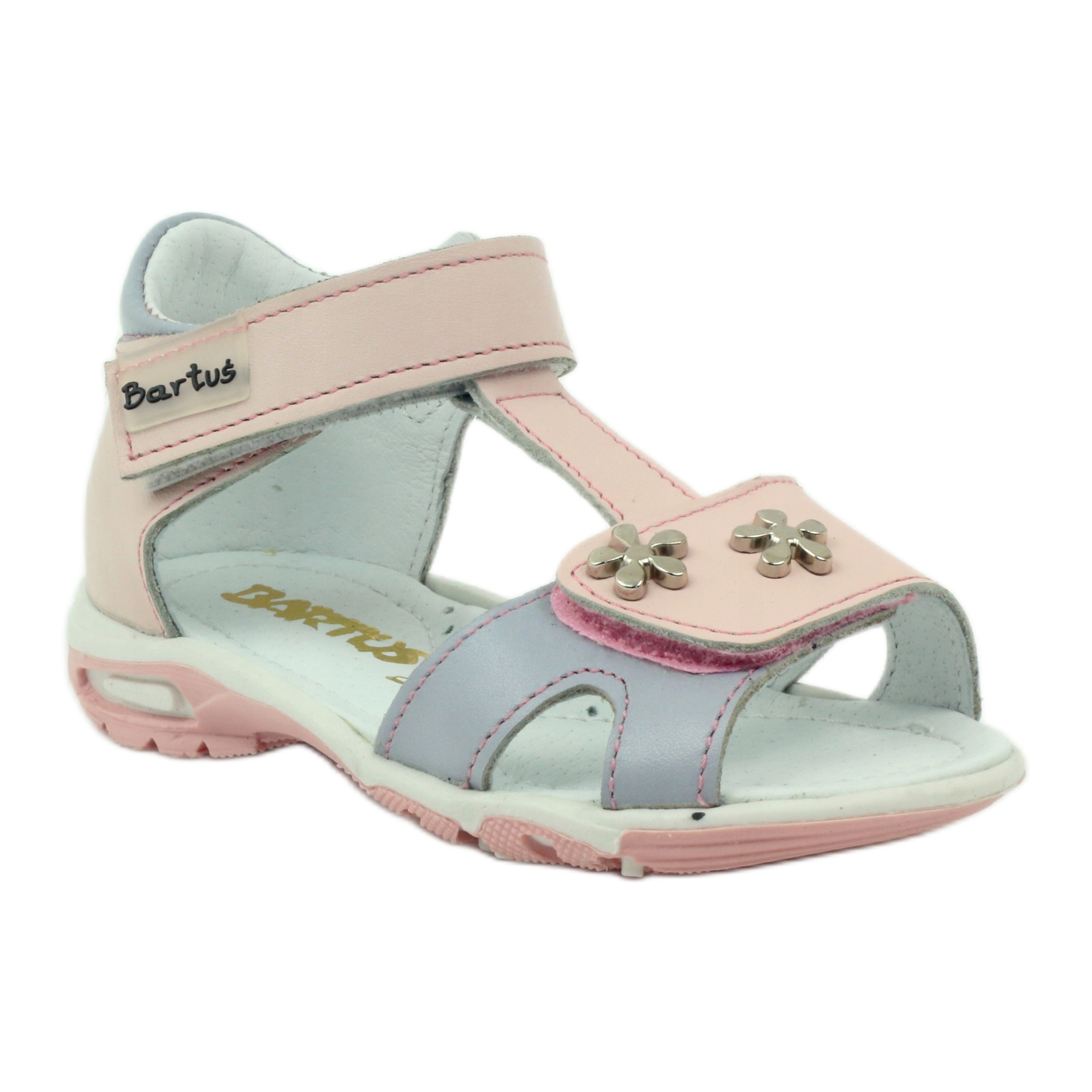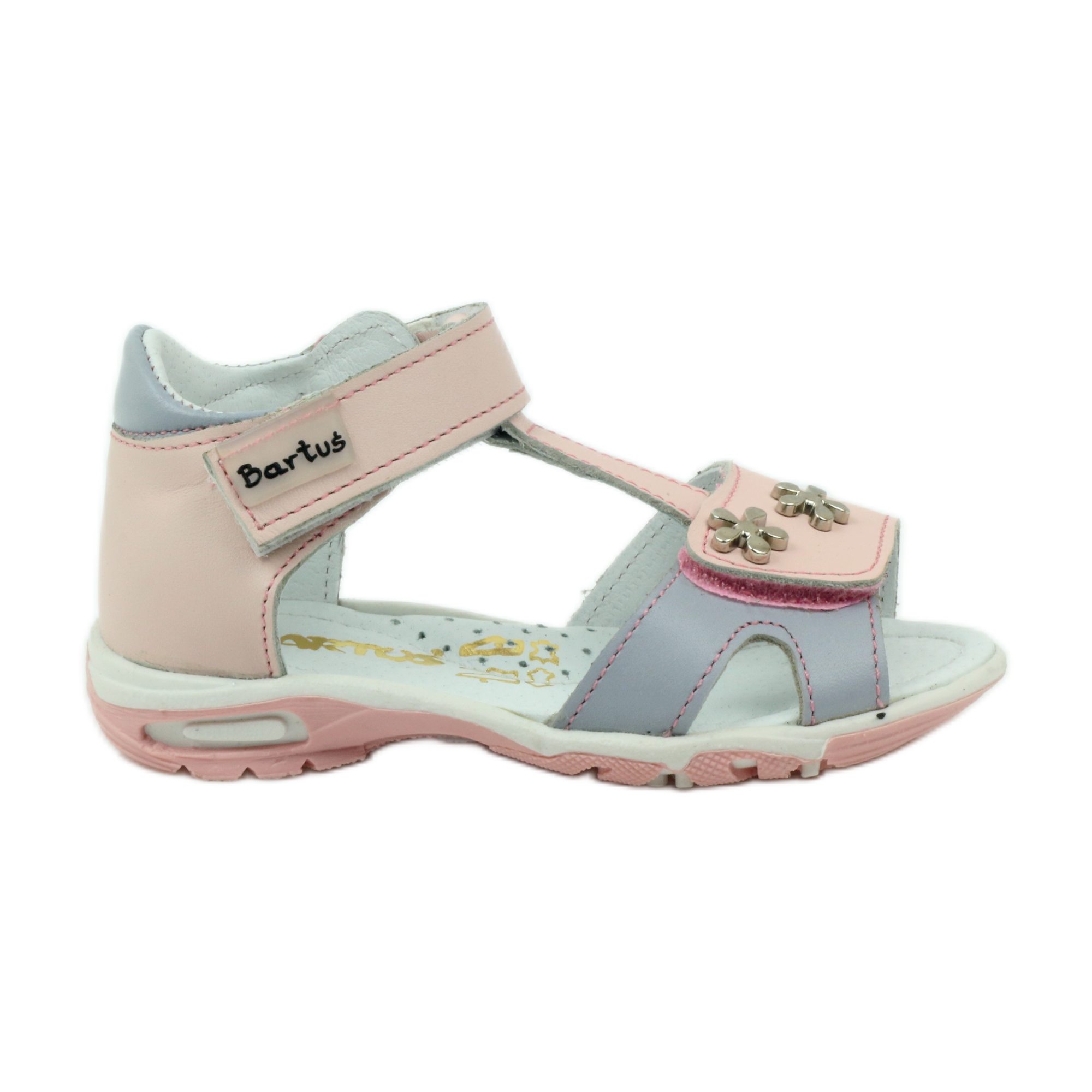 Bartuś Läderflickasandaler för kardborrband 138 Pink Bartuś rosa grå