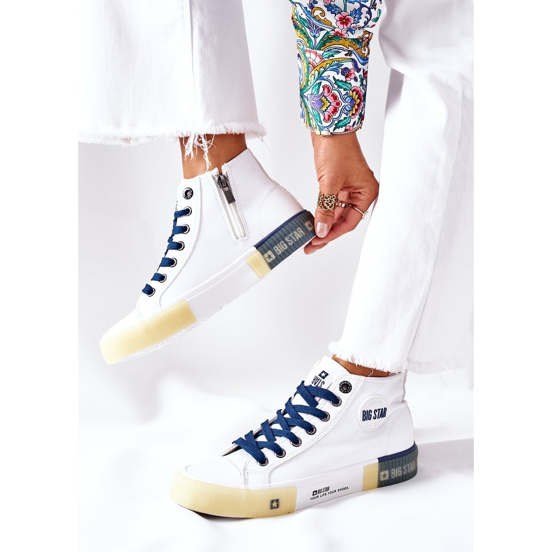 Detaljer: Läderhöga sneakers Big Star II274137 Vit marinblå