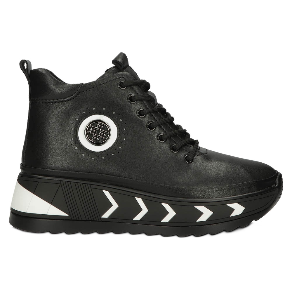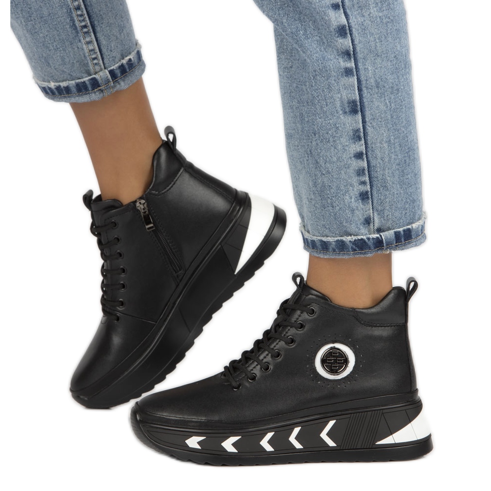 Sulmaterialet är syntetiskt, vilket dessutom ökar motståndskraften mot olika väderförhållanden, och tillverkarens originalförpackning ger elegans. Dessa kilstövlar i läder är ett perfekt val för varje aktiv kvinna som vill se snygg ut utan att ge avkall på komforten under kalla dagar.