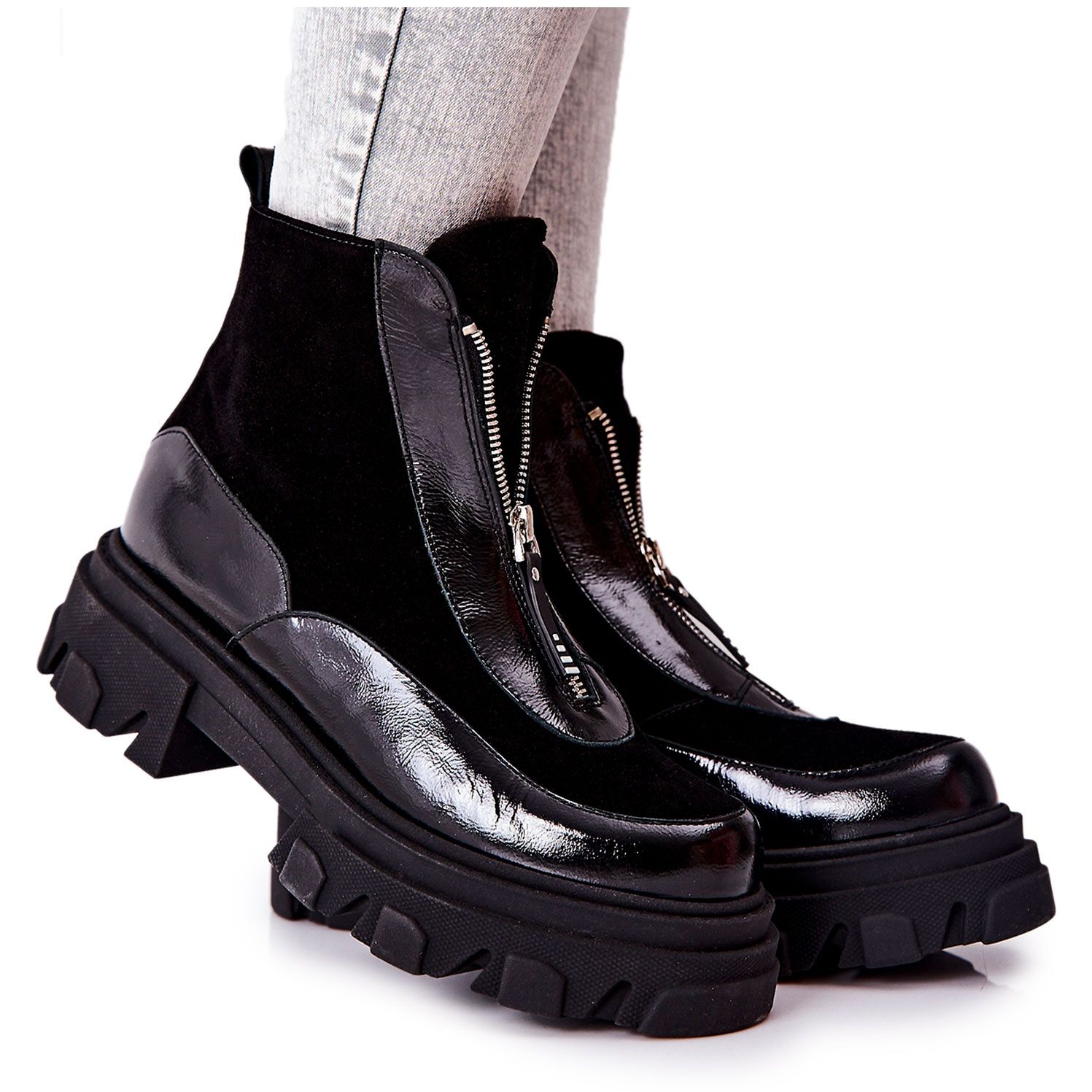 Den massiva sulan och platta hälen säkerställer stabilitet och komfort under användning, vilket är nödvändigt i en galen vardag. Stövlarna är försedda med en praktisk dragkedja framtill på ovandelen, vilket gör dem lätta att ta av och på. Tack vare noggrant utförande och minimalistisk design matchar dessa svarta ankelboots många stilar - både avslappnade och mer eleganta.