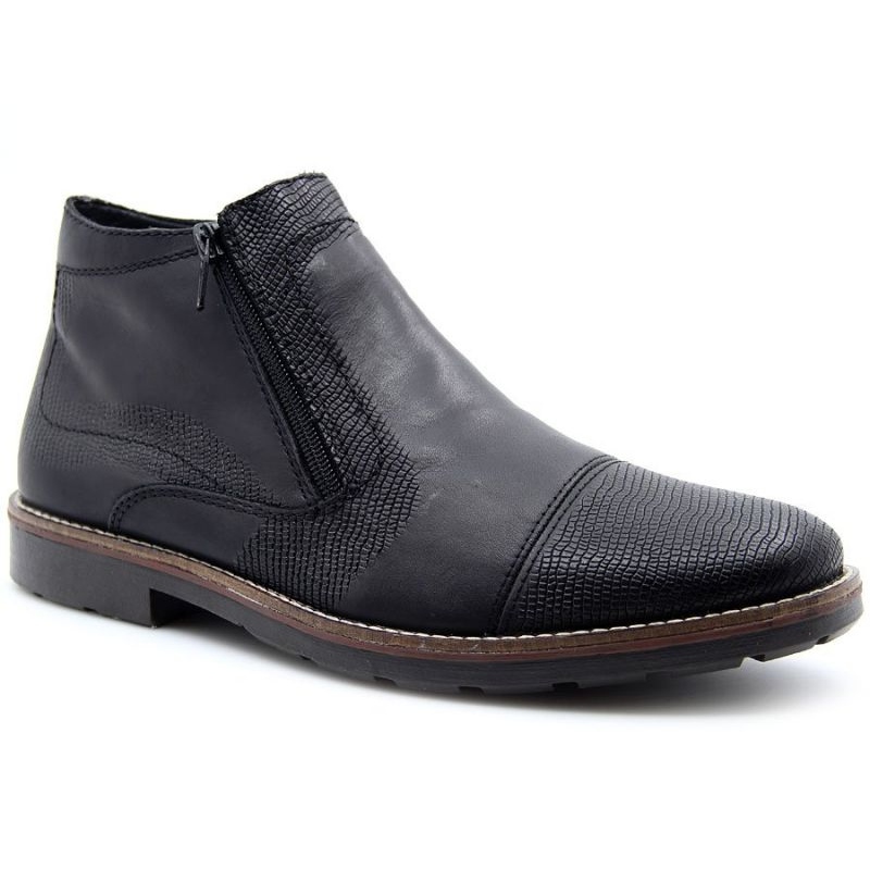 Eleganta, bekväma och praktiska mäns stövlar Rieker M RKR269 skapade för svalare månader. Klassiskt, svart naturläder i kombination med en isolerad foder (fårskinn) garanterar värme och komfort under hösten och vintern. Sidan blixtlåset gör det lättare att ställa in, och den eleganta formen gör att modellen matchar både avslappnade och mer eleganta stilar.
