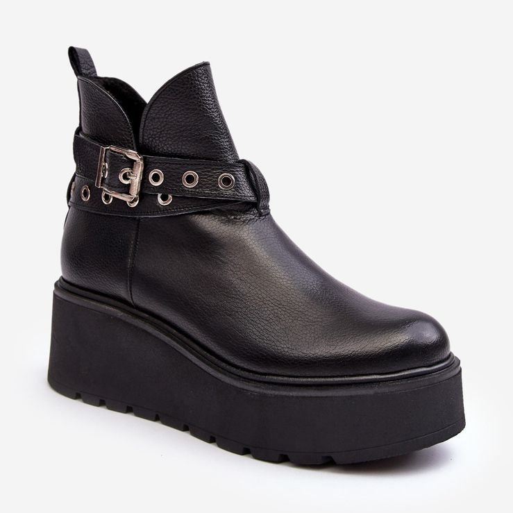 Detaljer: Läderkängor för kvinnor på en plattform med remmar Zazoo 1752 Svart
