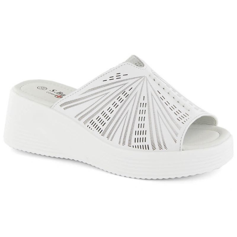 Läderkilar på S. Barski -kilen i Oli255a i vitt är det perfekta valet för kvinnor som vill kombinera komfort med en fashionabla stil på sommardagar. Tillverkad av naturläder av hög kvalitet kännetecknas av en öppen konstruktion, som ger utmärkt ventilation och komfort att bära, inte bara under promenader, utan också dagligen.