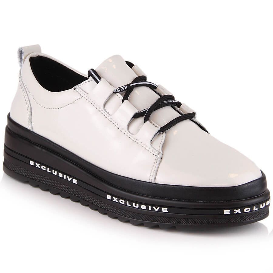 Detaljer: Läderlackerade bekväma skor på den beige plattformen S.Barski LR29592
