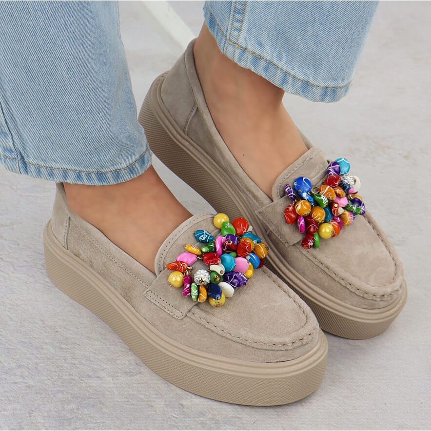 De kännetecknas av en unik design, som är berikade med subtila pärlor, vilket ger dem lite glöd och charm. Perfekt för olika stiliseringar - från avslappnad till mer elegant. En mjuk läderinsula ger komfort hela dagen, vilket gör dem till det perfekta valet dagligen.