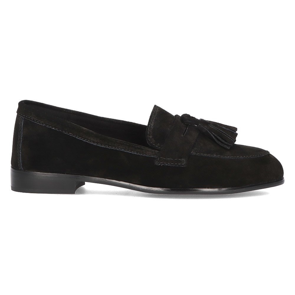 Mockasiner har en rund tå och en platt klack, vilket gör dem till en perfekt lösning för olika tillfällen – från arbete till sociala sammankomster. De kännetecknas av en minimalistisk design i en klassisk svart färg, vilket gör dem lätta att kombinera med många stilar. Fransarna tillför lite originalitet och feminin charm.