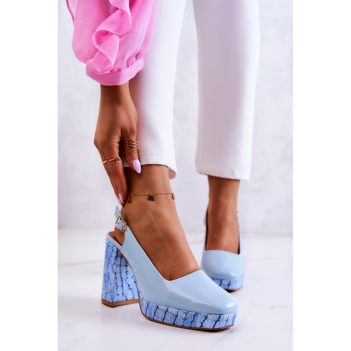 Dessa pumps kännetecknas av en öppen häl och en justerbar rem fäst med ett spänne, vilket säkerställer inte bara estetik, utan också en perfekt passform till foten. Skons tå är täckt, vilket ger den ett elegant utseende, och den massiva hälstolpen (höjd 10 cm) ger stabilitet, så att du får självförtroende i varje steg.