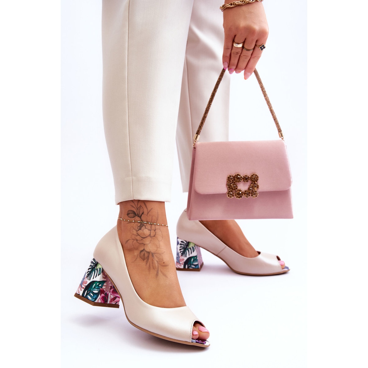 Läderpumpar med en dekorativ häl Lewski -skor 2608/K - Beige Pearl