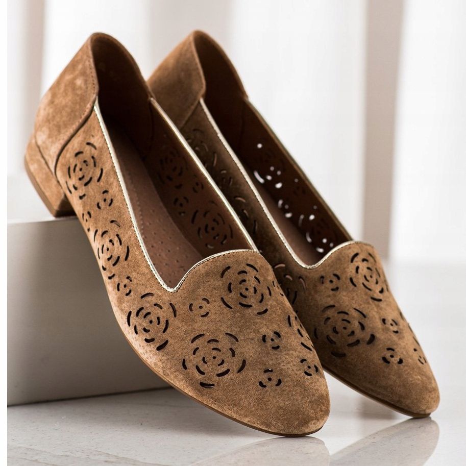 Läderpumps med rosor från Sergio Leone är ett perfekt val för kvinnor som vill kombinera komfort med elegans. Dessa bruna skor med en 2 cm hög låg klack är perfekta för vardagsbruk och olika tillfällen.