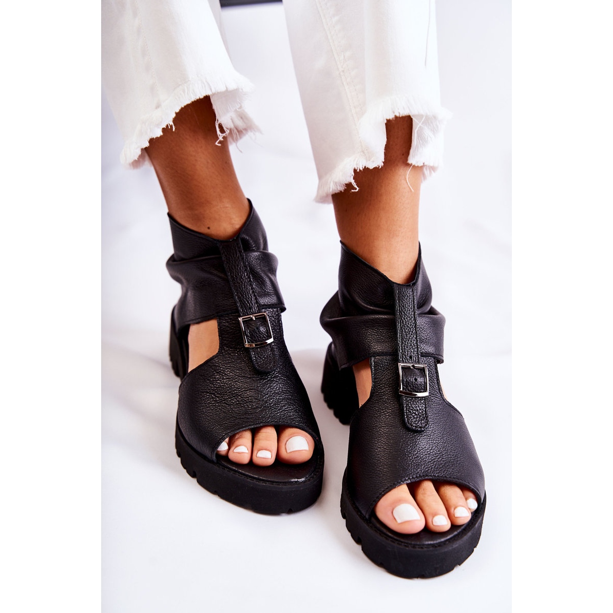 Detaljer: Lädersandaler för kvinnor med dragkedja Nicole 2748 Svart