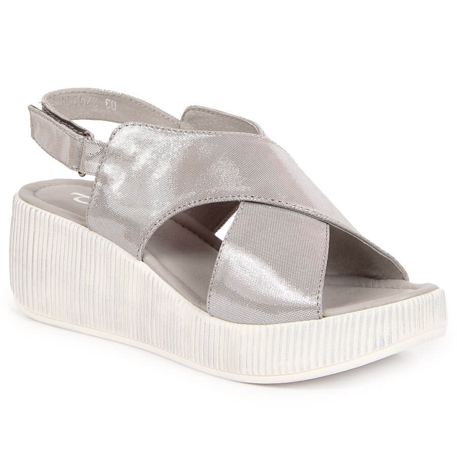Lädersandaler för kvinnor på en silverkil Dolce Pietro