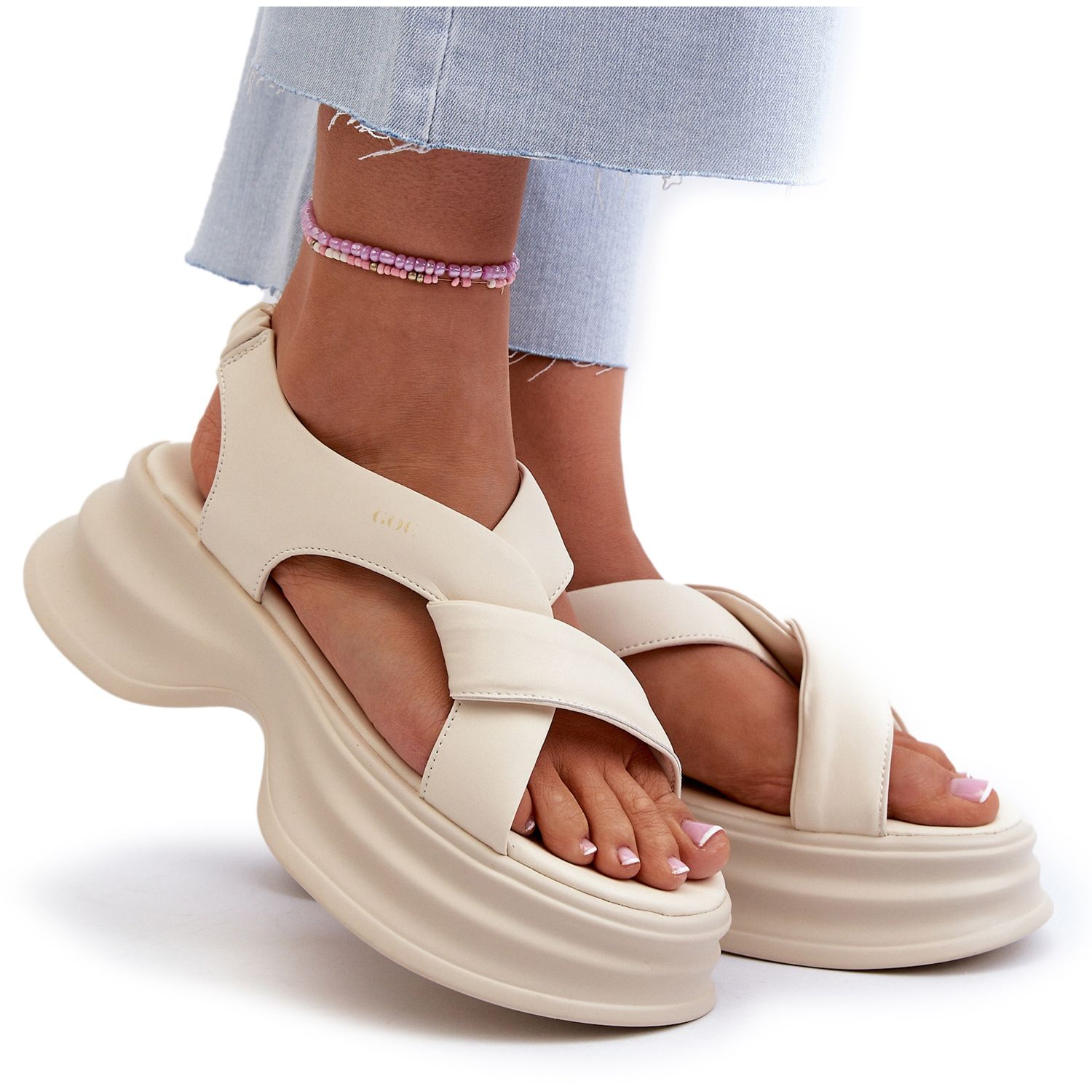 Information: Lädersandaler för kvinnor på en tjock sula, ljusbeige GOE NN2N4105