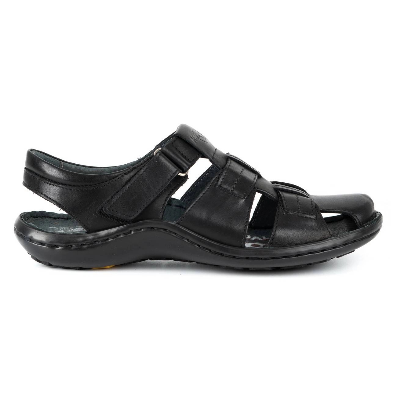 Klassisk, bekväm och hållbar - mäns sandaler Kampol 220kam i Universal Black är ett förslag för män som värderar kombinationen av elegans med sportkomfort. Tillverkade av högkvalitativt naturläder, försiktigt sydd och limmade, kommer de att arbeta i vardagen under sommarsäsongen.