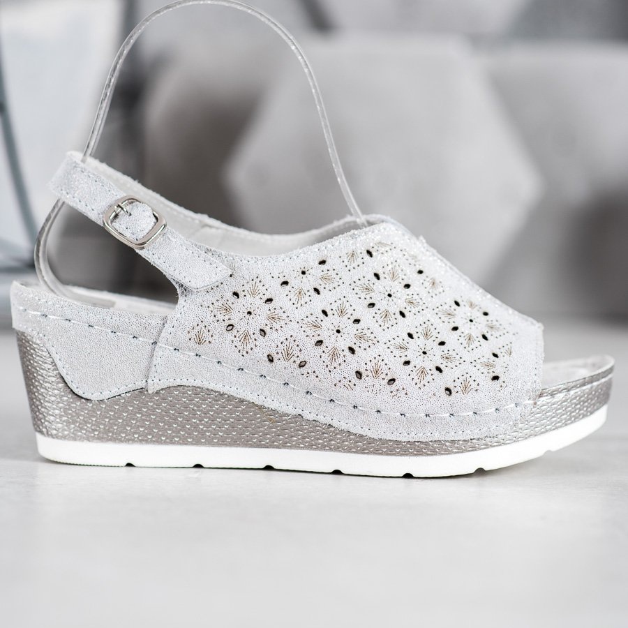Sandalerna är gjorda av naturligt läder av högsta kvalitet och är exceptionellt hållbara och bekväma att använda. Innovativ design med genombrutna detaljer och subtilt glitter gör att varje outfit som består av dem får en subtil lyster. Plastsulan med slitbana ger tillräckligt grepp, vilket gör dem praktiska för sommarpromenader.