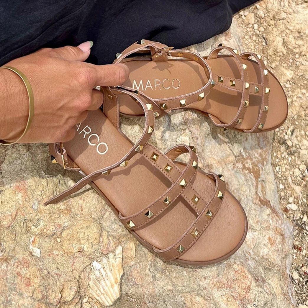 Detaljer: Marco Shoes Lädersandaler med guldnyckel brun
