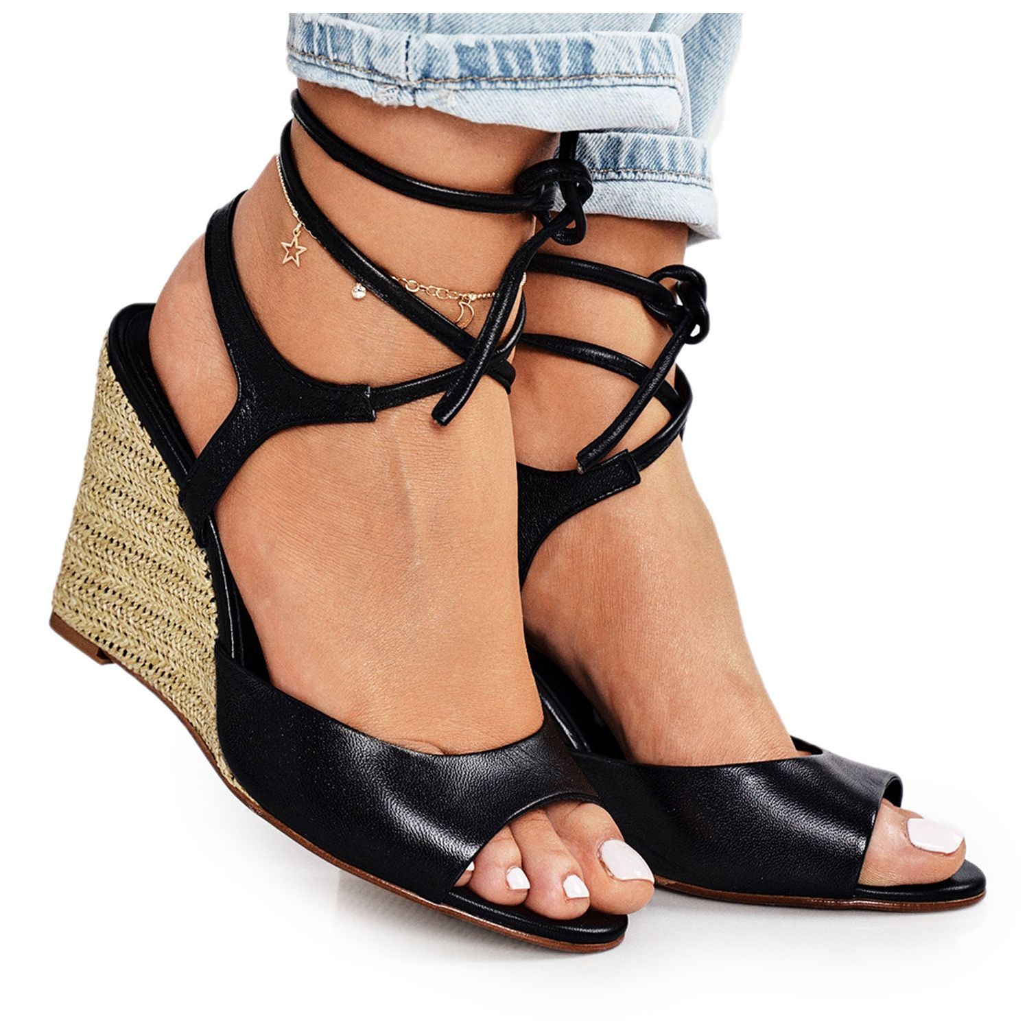 Detaljer: Lädersandaler på en flätad kil Laura Messi 1944 svart