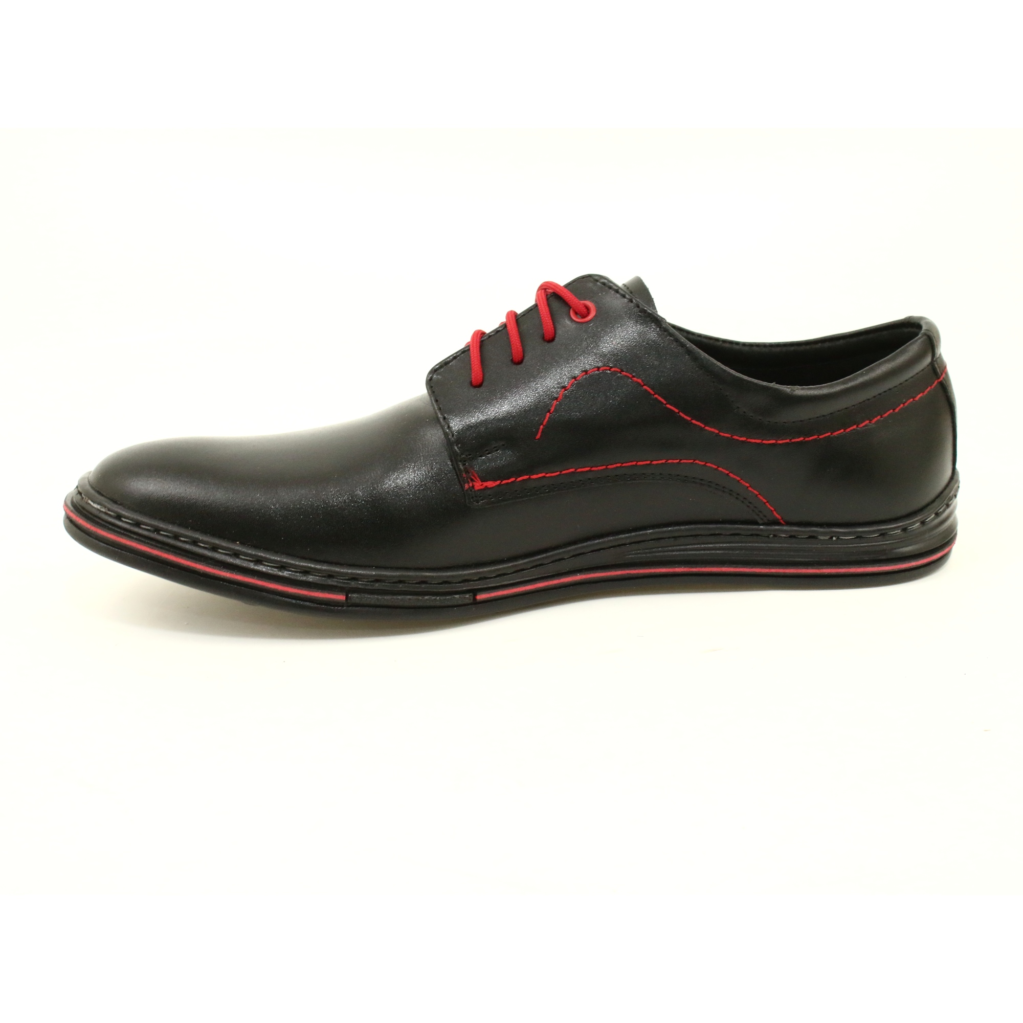 Olivier Men's Leather Shoes 295l Svart med rött är ett fantastiskt förslag för män som värderar komfort och stil. Dessa skor är helt gjorda av högkvalitativa naturläder, både yttre och inre, och garanterar extraordinär bärande komfort. Polskt hantverk och omsorg för varje detalj gör att de är pålitliga skor som säkert kommer att tjäna under många säsonger.