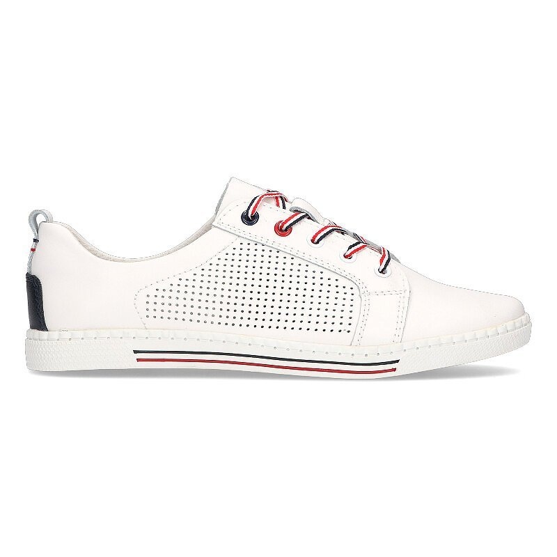 Syntetsulan som används i modellen är lätt och flexibel och plattformshöjden på 1,5 cm och en liten klack på 2 cm gör skorna bekväma även efter många timmars användning. Den klassiska vita färgen och bristen på mönster gör att de enkelt kan kombineras med olika stilar - från avslappnad till mer elegant.