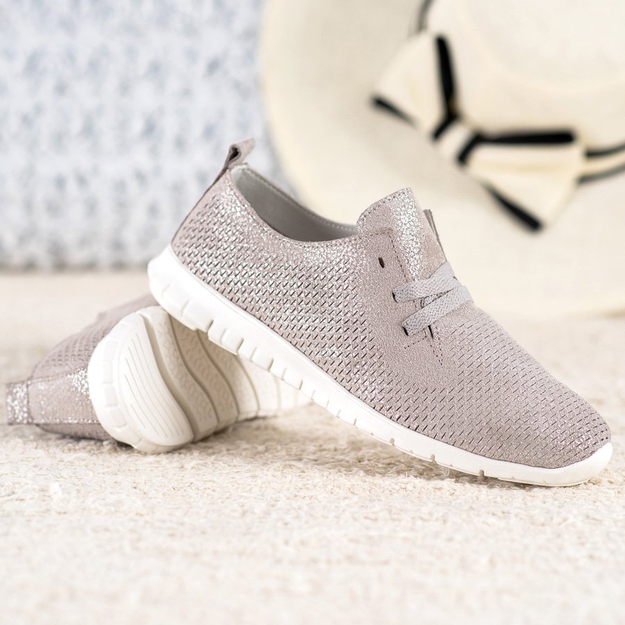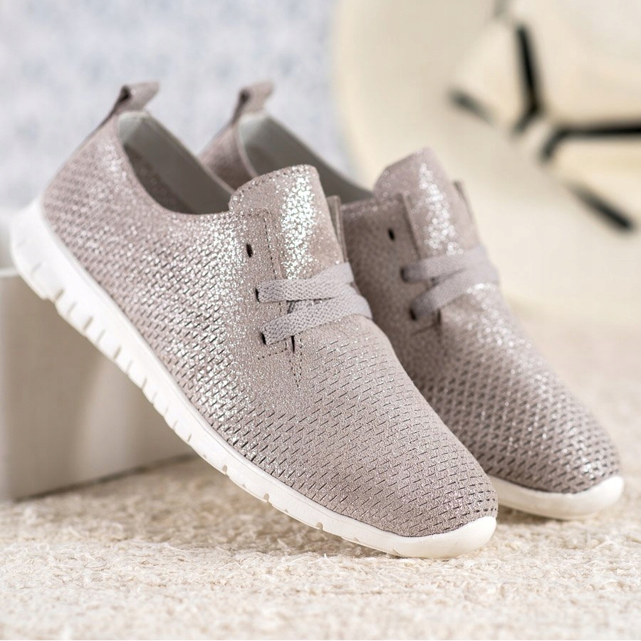 VINCEZA läderskor med glitter i beige färg är ett utmärkt val för kvinnor som vill kombinera elegans med vardagskomfort. Dessa snygga skor utmärker sig inte bara genom sin unika design, utan också genom gediget utförande av högkvalitativa material. Ovandeln i läder kommer att ge klass till varje styling, och det skimrande glittret kommer att locka uppmärksamhet och särskilja dem från andra modeller.