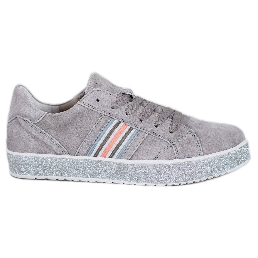 Tillverkade av naturligt läder av högsta kvalitet, dessa skor utmärks av en subtil, moderiktig färg och iögonfallande glitterdetaljer. En bekväm, flera centimeter hög plattform med en höjd på 2,5 cm gör inte bara figuren smal, utan säkerställer också komfort vid varje steg.