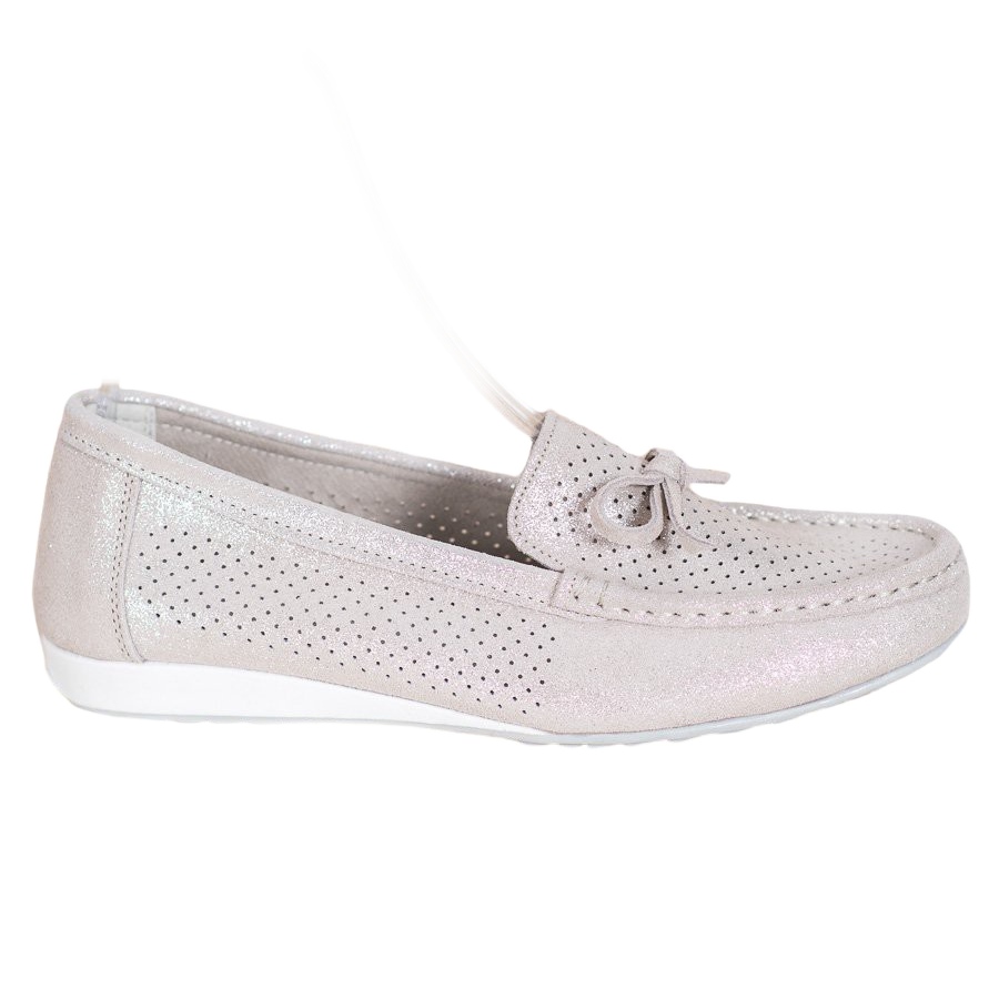 En charmig rosett placerad på ovandelen ger skorna en flickaktig karaktär, som perfekt framhäver deras avslappnade, klassiska och eleganta stil. Användningen av ett genombrutet mönster gör dem till ett idealiskt val för vår- och sommardagar, både till vardags och för fester.