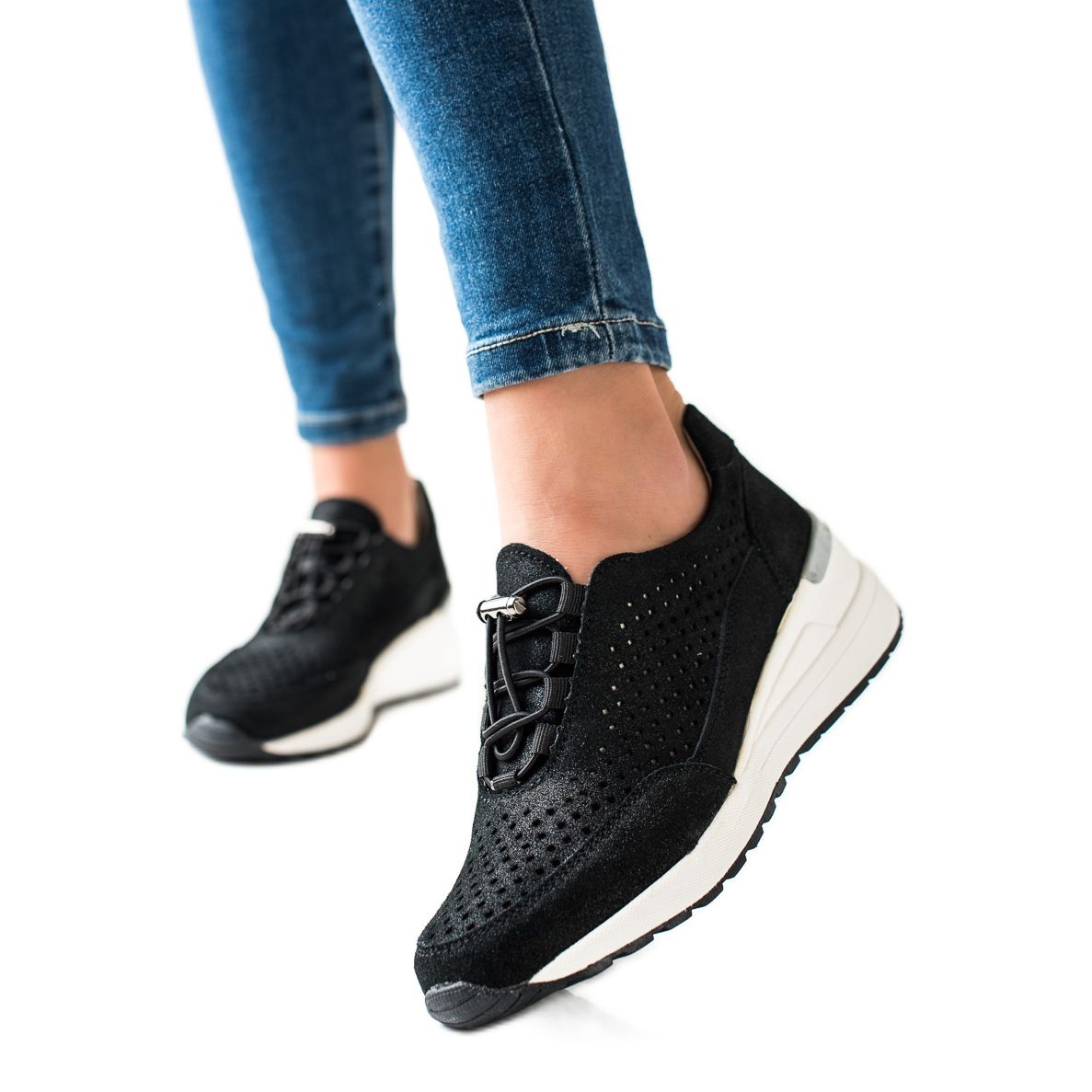 VINCEZA läder sneakers med glitter i svart är ett idealiskt förslag för kvinnor som värdesätter kombinationen av stil och komfort i vardagsstyling. Tillverkade av högkvalitativt naturligt läder erbjuder de inte bara ett attraktivt utseende, utan också komfort att bära. Deras mjuka, inbyggda häl ger stabilitet och den runda tån ger lätthet.
