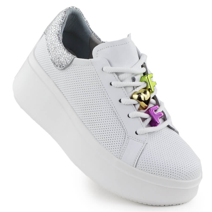 Upptäck de unika läderskorna på en tjock sula från Filippo -märket - Model DP6793. Dessa eleganta, perforerade vita skugga är ett bra förslag för kvinnor som vill kombinera komfort med fashionabla stil.