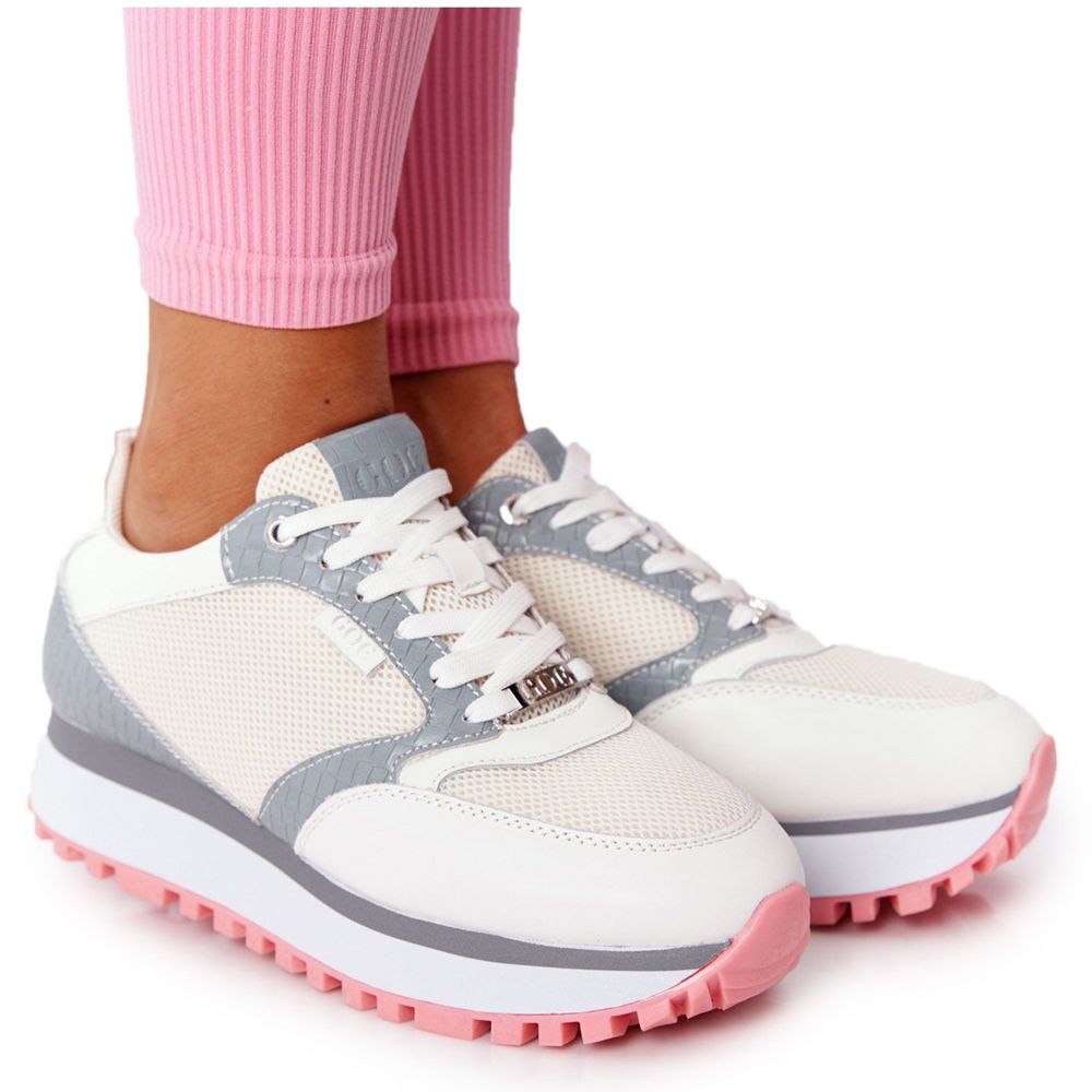 Vi presenterar GOE HH2N4008 plattformssportskor i läder i vitt med flerfärgade accenter - det perfekta valet för kvinnor som värdesätter komfort och stil. Dessa damskor från det välkända polska märket GOE kombinerar modern design och högkvalitativt utförande.