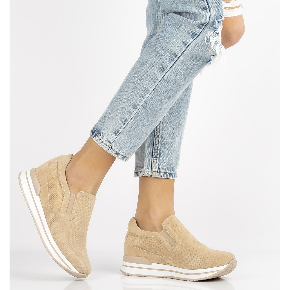 Sulan av syntetiskt material garanterar adekvat dämpning, och plattformshöjden på 2 cm och kilhöjden på 5 cm ger karaktär och elegans. Det som är särskilt anmärkningsvärt är avsaknaden av ett mönster, vilket gör dessa skor fashionabla och universella, som matchar olika stilar.