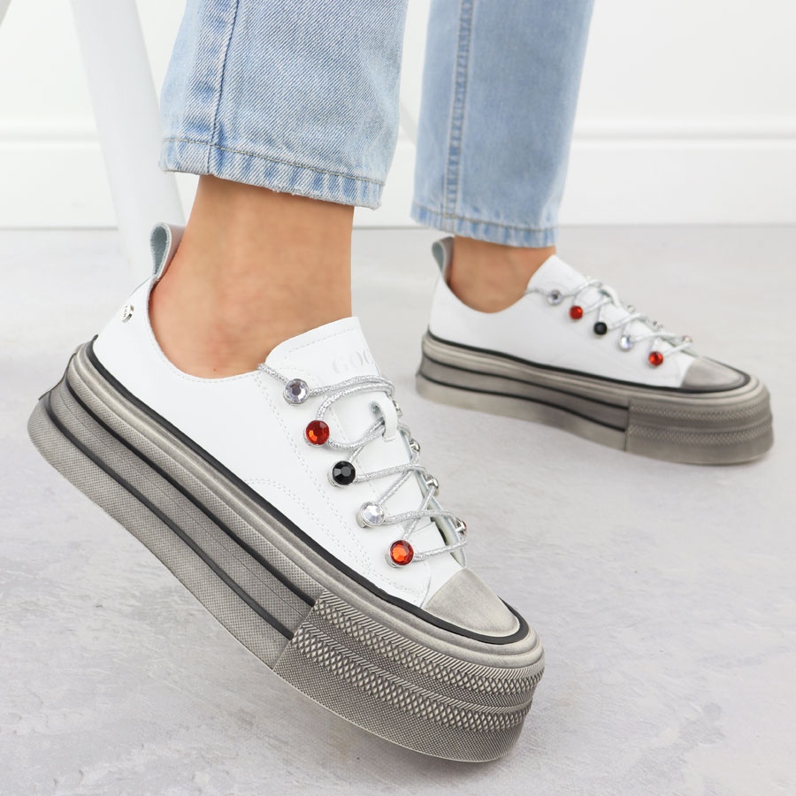 Lädersneakers på White Goe NN2N4054 -plattformen är det perfekta valet för kvinnor som värderar komfort i kombination med de senaste modetrenderna. Dessa ursprungliga skor kommer från en känd Goe -kollektion, som är känd för sitt utmärkta hantverk och uppmärksamhet på detaljer.