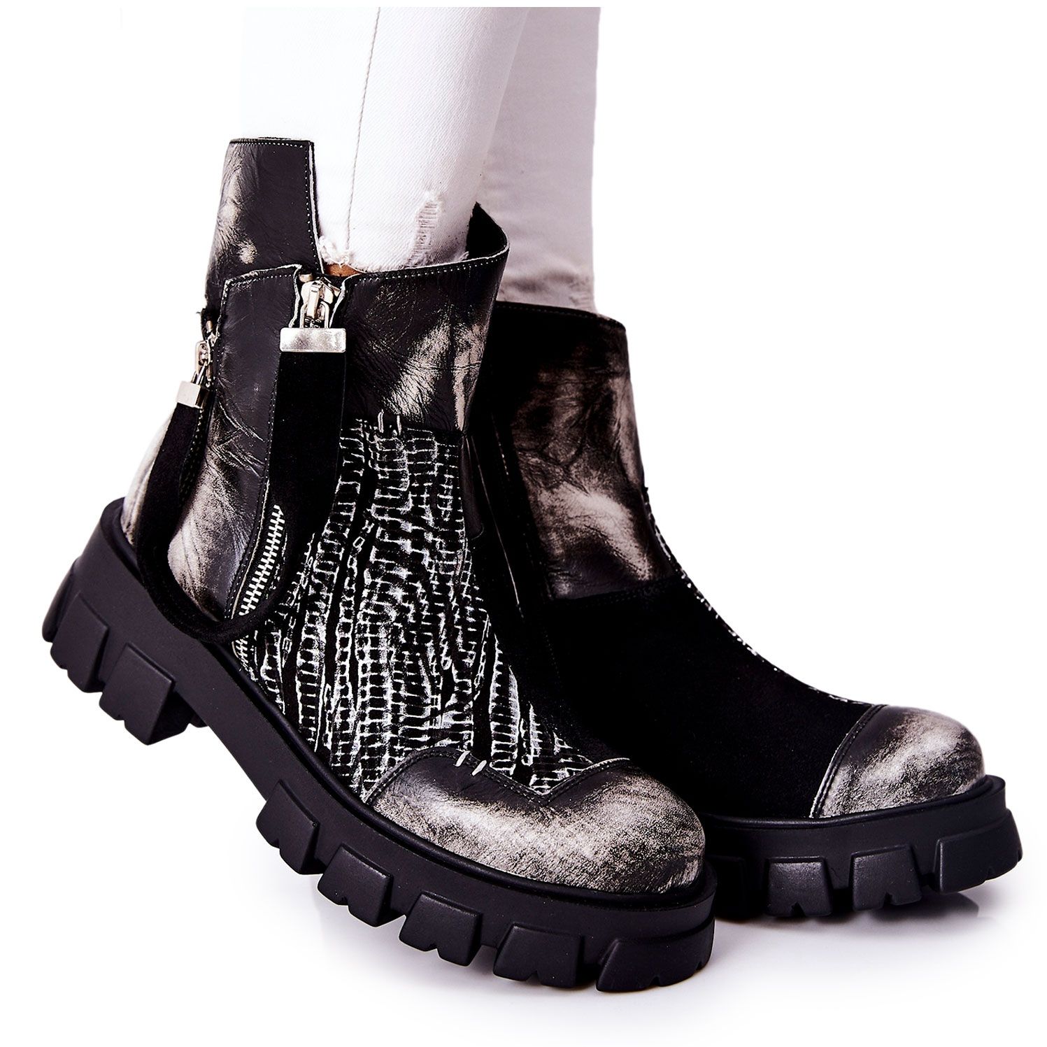 Tillverkade av högkvalitativt naturligt läder och mocka, garanterar de hållbarhet och komfort vid användning. Fina sömmar och olika mönster ger dem en unik karaktär som skiljer sig från andra modeller. Den dekorativa remmen, placerad bredvid blixtlåsen på utsidan, framhäver den moderna designen och attraktiviteten hos dessa stövlar.