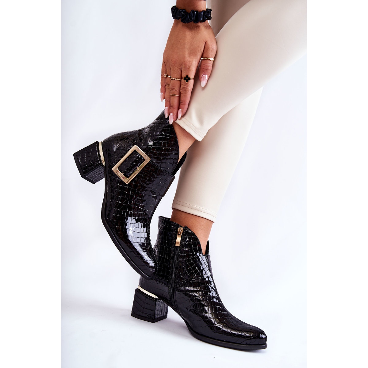 Detaljer: PA2 Läderstövlar Krokodil Zip Mönster Svart Briana