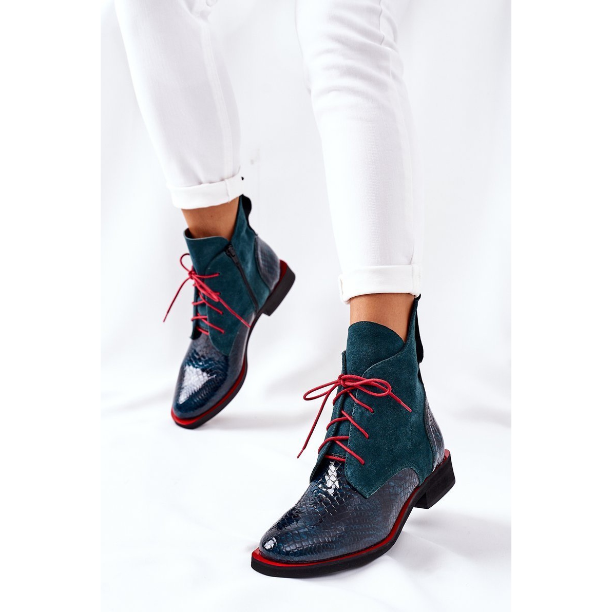 Detaljer: Alberto Violli Läderstövlar med krokodilmönster grön Cheyenne röd