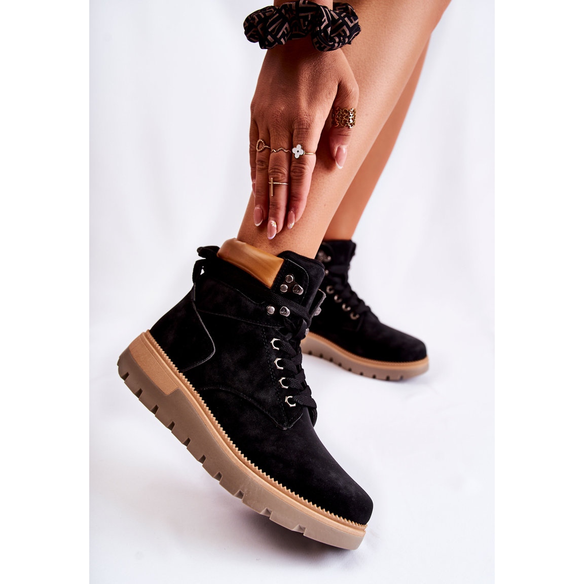 Denna modell är monterad på en plattform med intressanta spår, vilket inte bara ger karaktär, utan också säkerställer komfort under användning. Den rundade tån och ovandelen som täcker ankeln gör att stövlarna ser sensuella och moderiktiga ut. Dessutom gör en liten ögla på baksidan av ovandelen det lättare att ta på sig skorna, vilket säkert kommer att uppskattas av varje kvinna som springer varje dag.