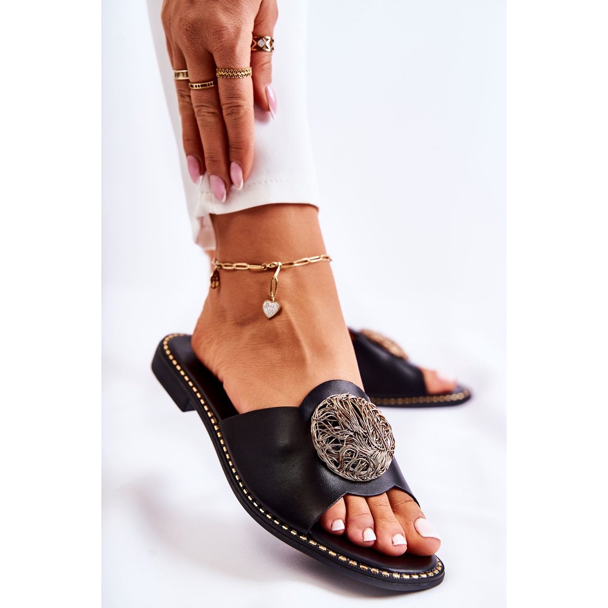 S.Barski S.Barski Lädertofflor för kvinnor med svart Colene-prydnad