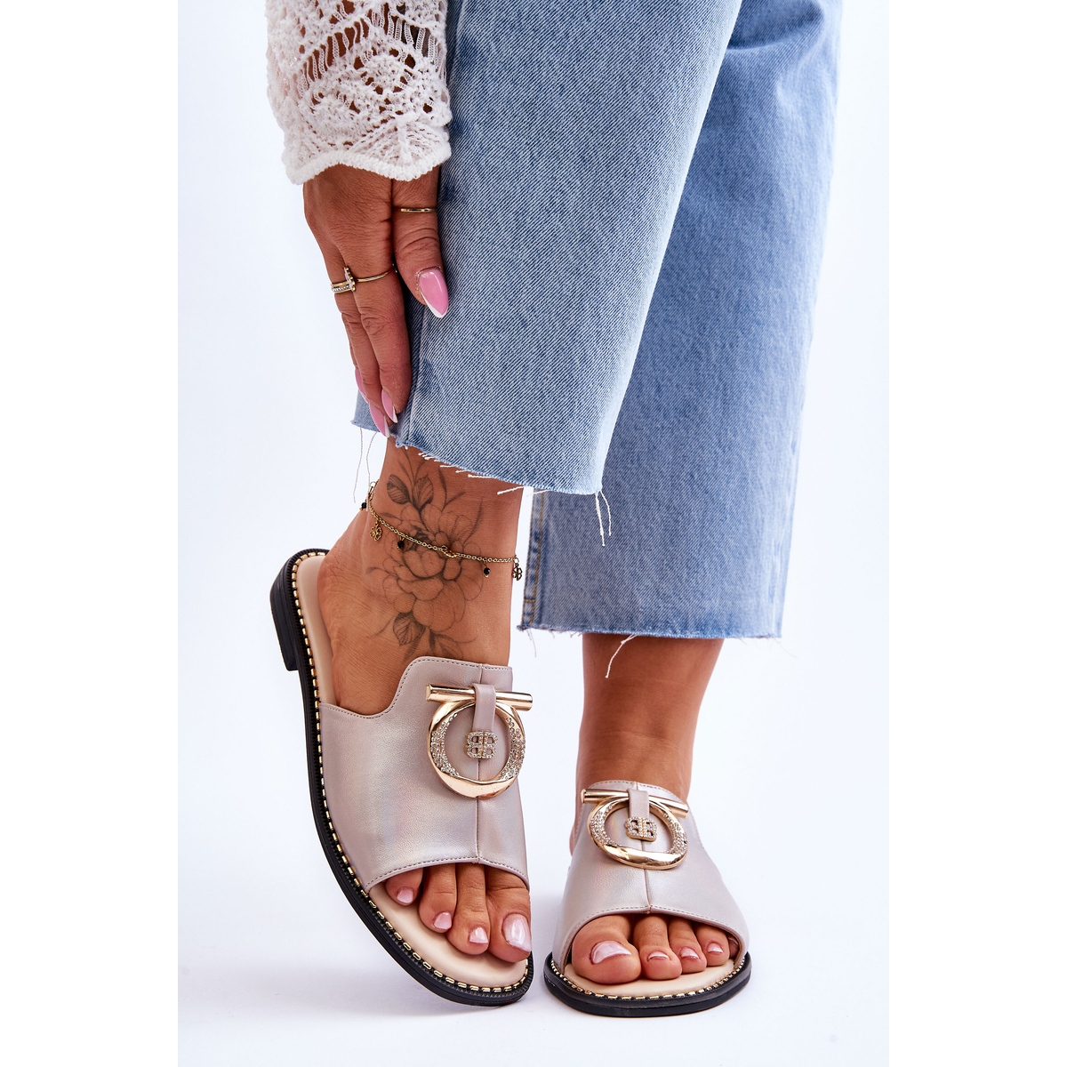 Komfortskor S.Barski KV-2775-32 Nakenbeige läderflipflops är kvintessensen av stil kombinerat med komfort, en idealisk lösning för kvinnor som värdesätter elegans och komfort i vardagsbruk. Tillverkade av ekologiskt läder av hög kvalitet ger de ett perfekt utseende samtidigt som de tar hand om miljön. Med en extra gyllene accent i form av strass på plasten blir dessa flip-flops ett attraktivt inslag i varje vår-sommar styling.