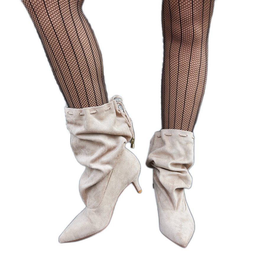 Inna marka Låga slip-on stövlar i beige ekomocka