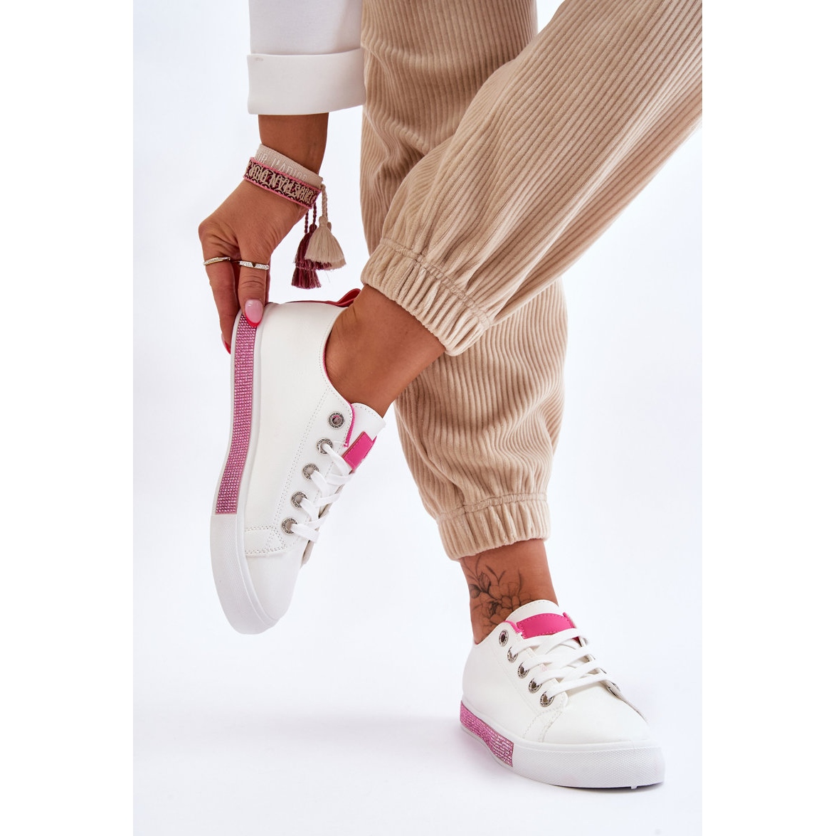 Detaljer: Låga sneakers för kvinnor med vita och rosa Demira-strålar