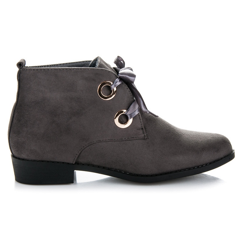 Utan mönster, i en klassisk grå färg, matchar dessa ankelboots perfekt med en mängd olika stilar - från jeans till klänningar. En innersula gjord av ett annat material garanterar komfort vid varje steg, och deras universella design gör dem till ett bra komplement till alla kvinnors garderob.
