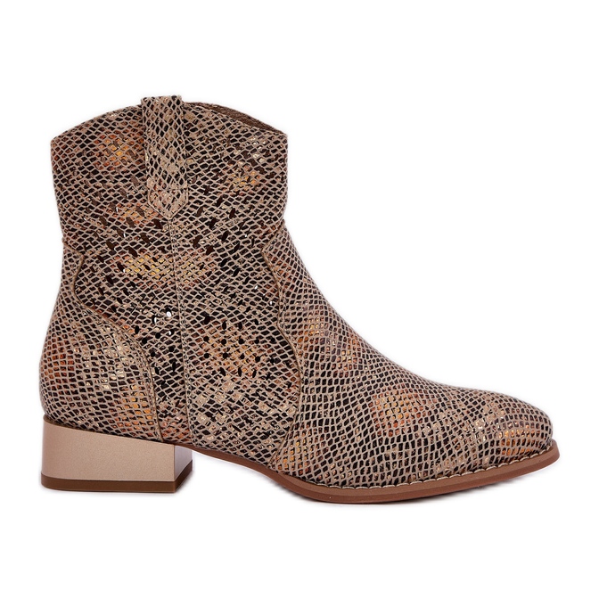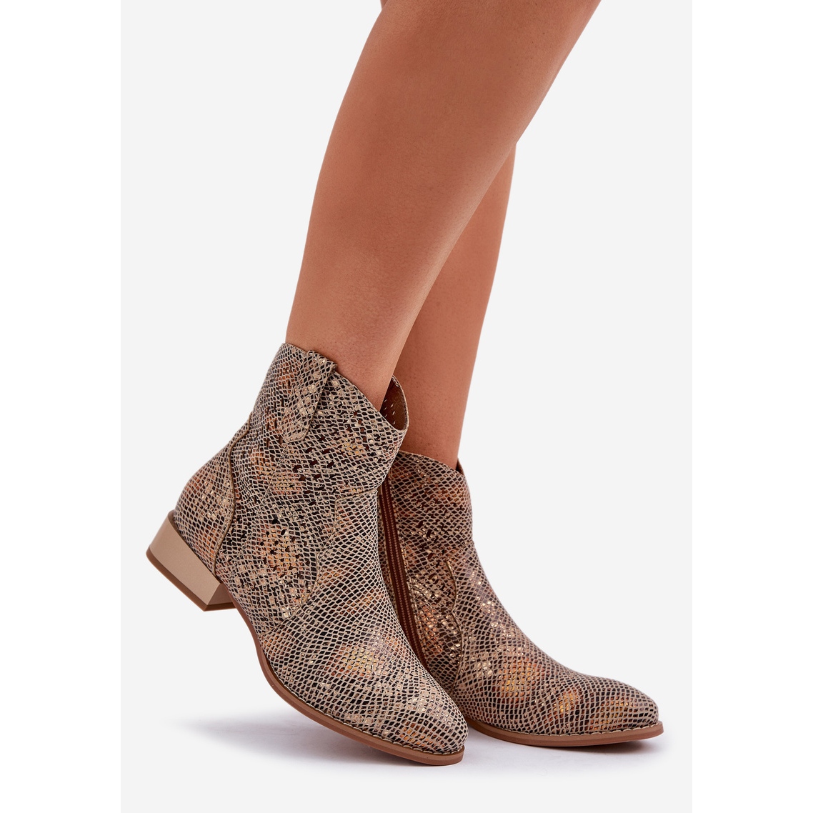 Detaljer: Jezzi Låghelade kvinnors öppna stövlar dekorerade med ett djurmönsterguld gyllene