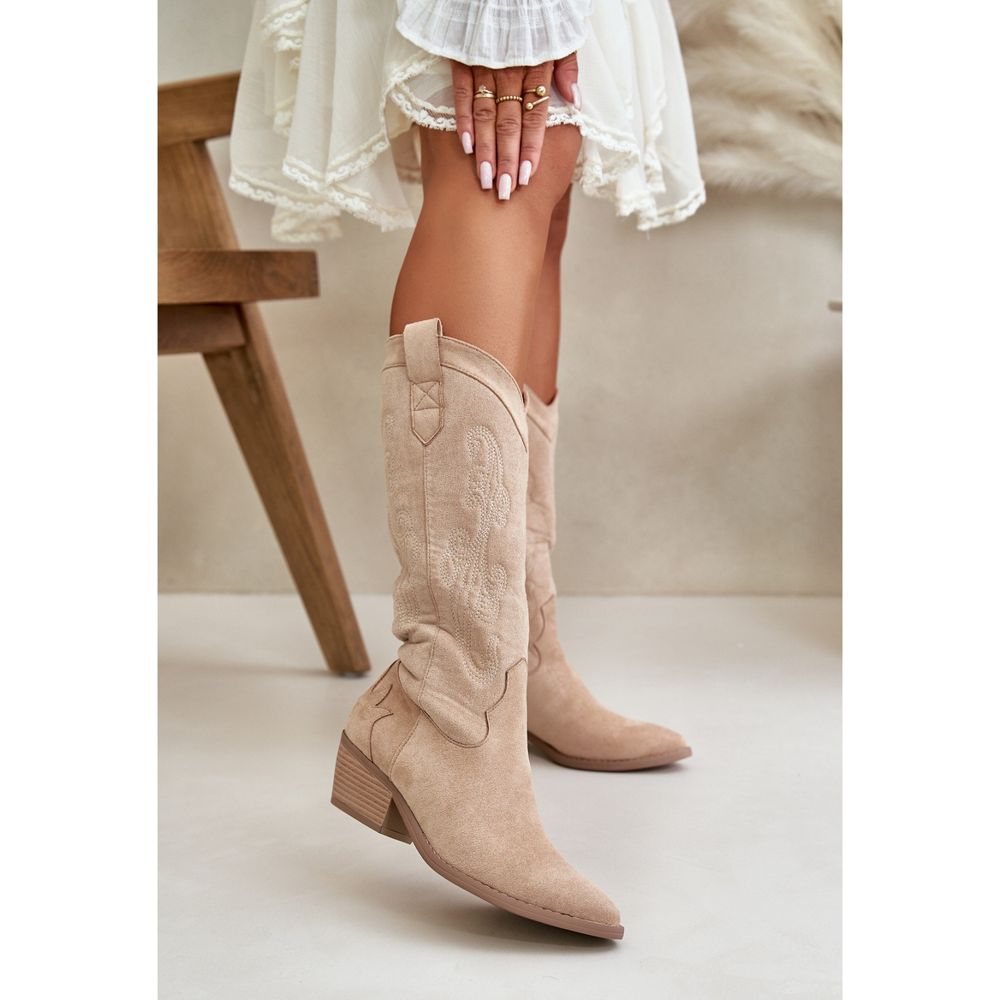 Detaljer: Lågklackade cowboystövlar för kvinnor gjorda av ekomocka, beige ligelia