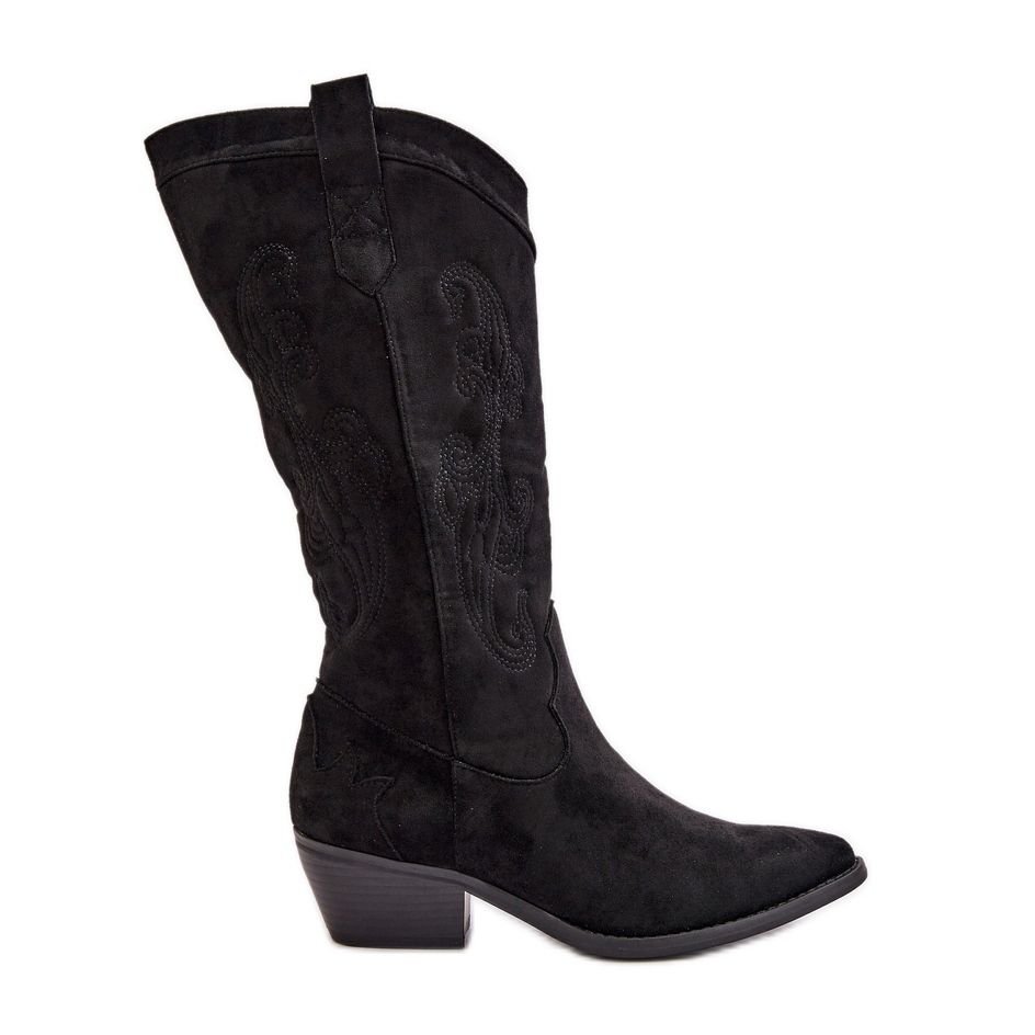 Upptäck de unika kvinnors låga hanhelade cowboystövlar med Eco Suede i en elegant svart färg. Detta är ett utmärkt val för kvinnor som vill kombinera komfort med fashionabla stil. Modellen som är inställd på en 5 cm hög stabil häl är perfekt dagligen, vilket ger komfort under en lång bärning.