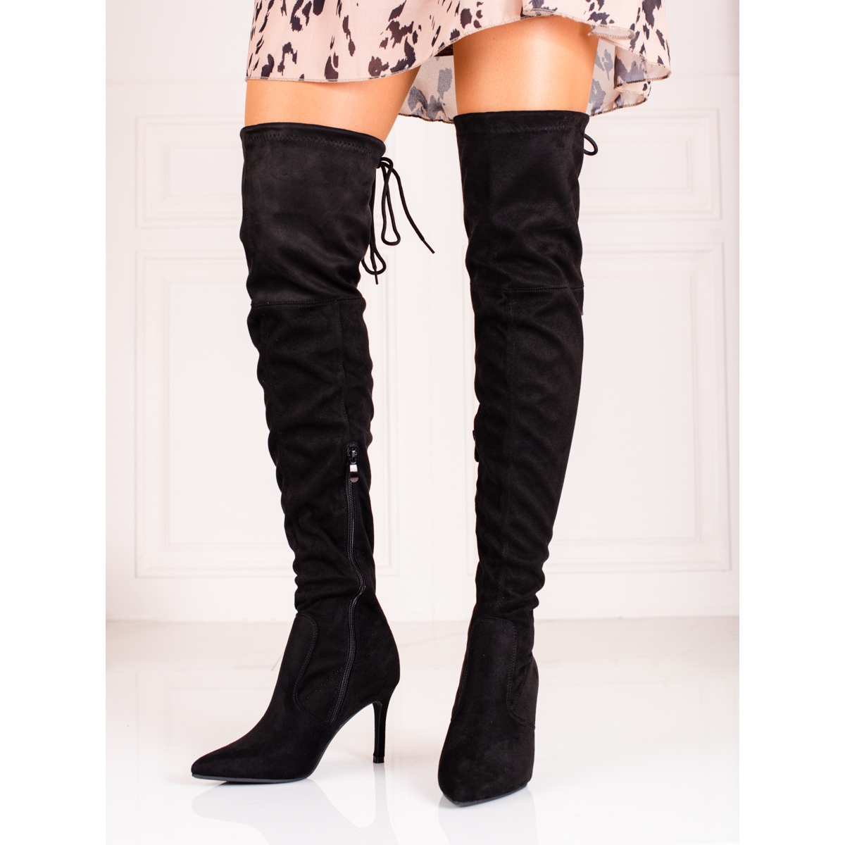 SHELOVET Lårhöga stövlar i mocka för kvinnor på en Shelovet-klack svart