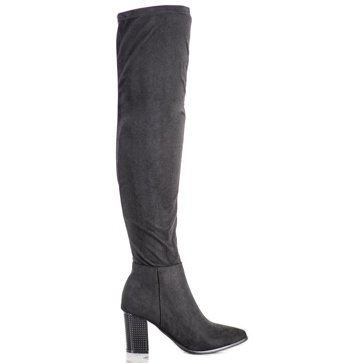 Eleganta lårhöga stövlar med dekorativ klack VINCEZA i svart - synonymt med chic och komfort